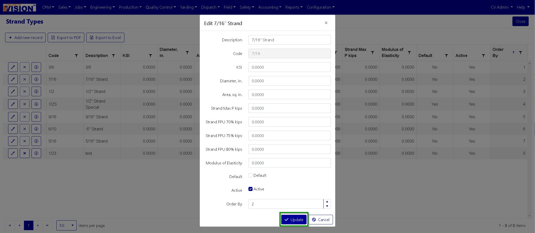 - To update the Strand Type click the “Update” button on the Add New dialog (see the Green box in Figure 6).