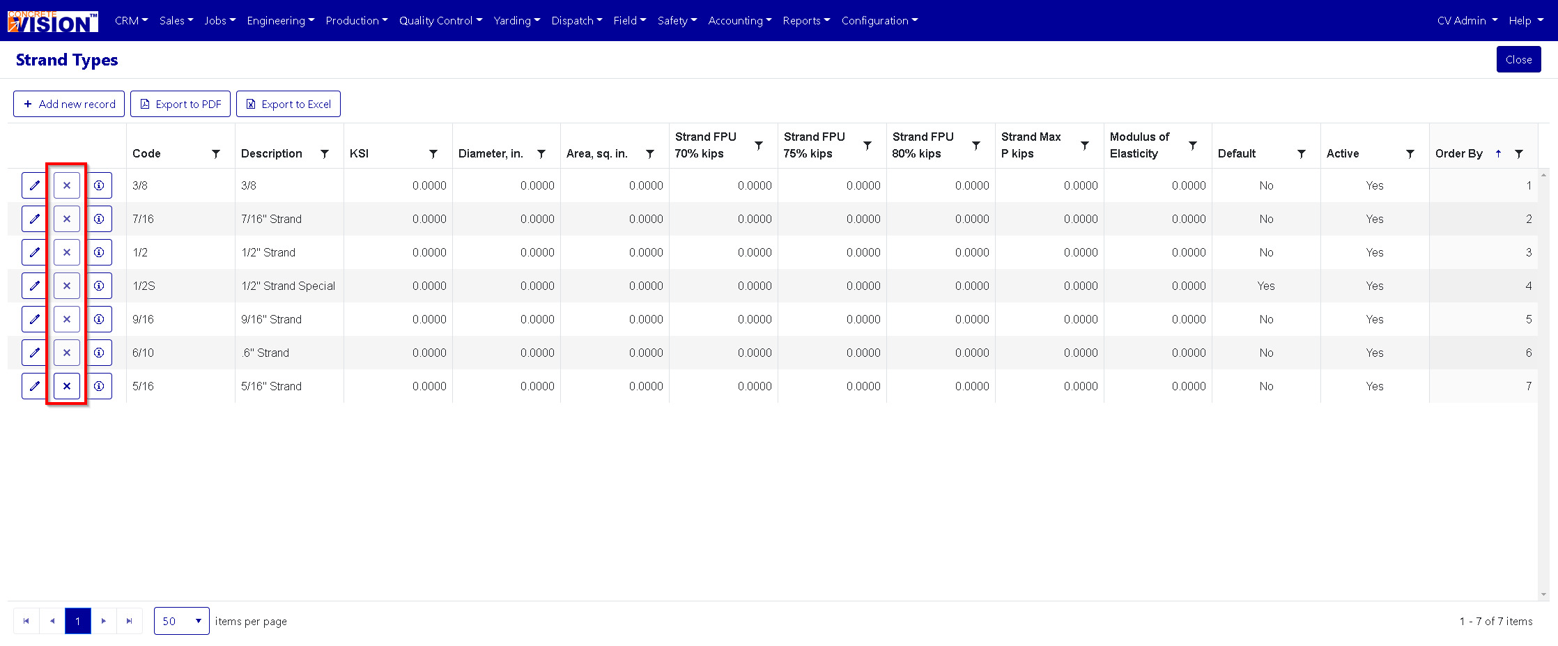 To delete any Strand Type, click the “X” button (Red box Figure 7) of the corresponding row of the Strand Type you wish to delete.