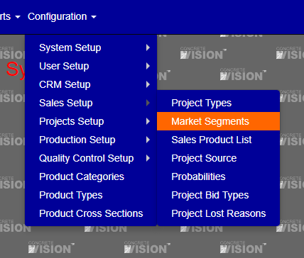 You access Market Segments from the Configuration > Sales Setup > Market Segments, shown below.