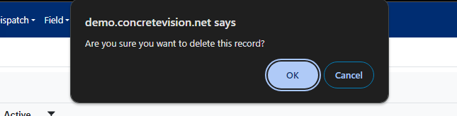 - A confirmation dialog will appear asking "Are you sure you want to delete this record?"