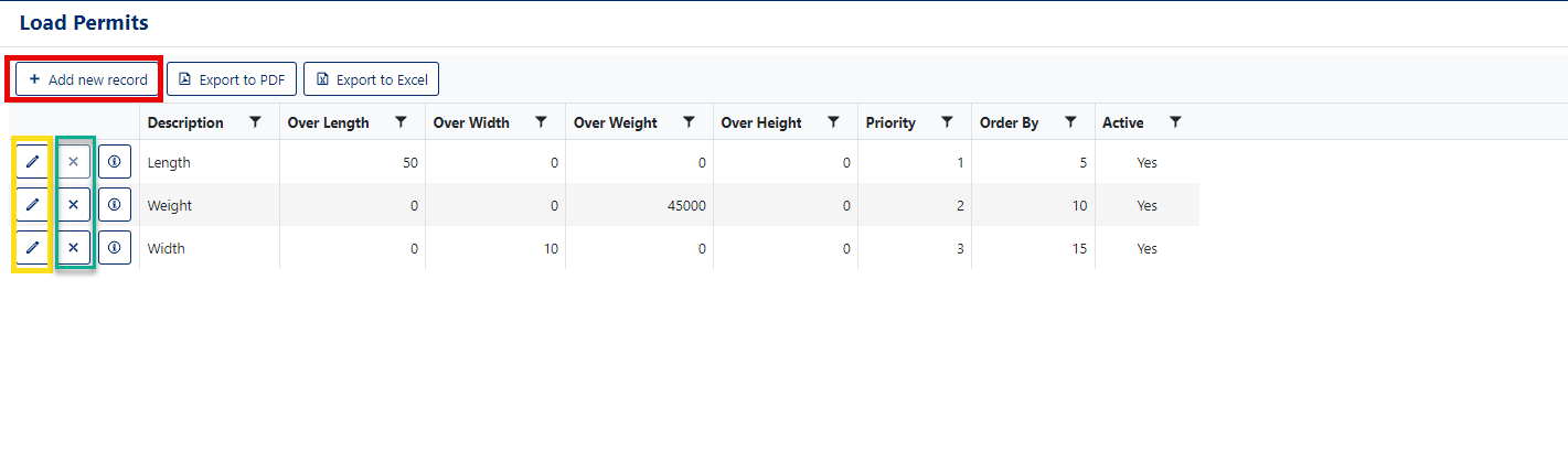 - Click the Pencil icon button to edit a Load Permit (Yellow box, Figure 2)