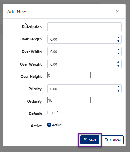 - Over Weight - Enter the maximum over-weight value