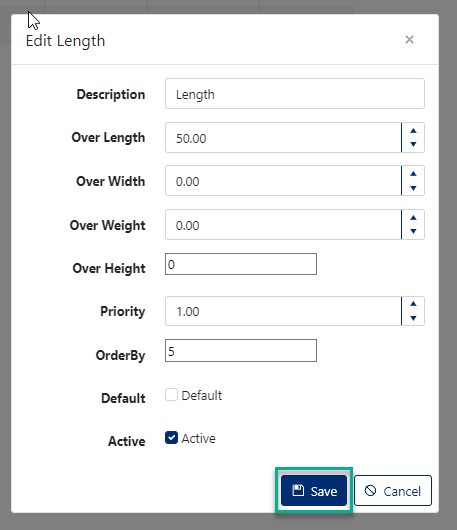 - Over Length - Enter the maximum over-length value