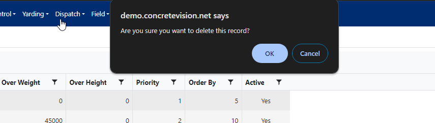The Permits screen allows you to manage Load Permits, which define size and weight restrictions for concrete delivery loads. These permits help ensure compliance with transportation regulations by tracking oversize and overweight conditions for loads that exceed standard dimensions.