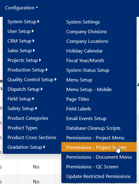 You access Permissions – Project Screen from the Configuration > System Setup > Permissions – Project Screen, shown below in Figure 1