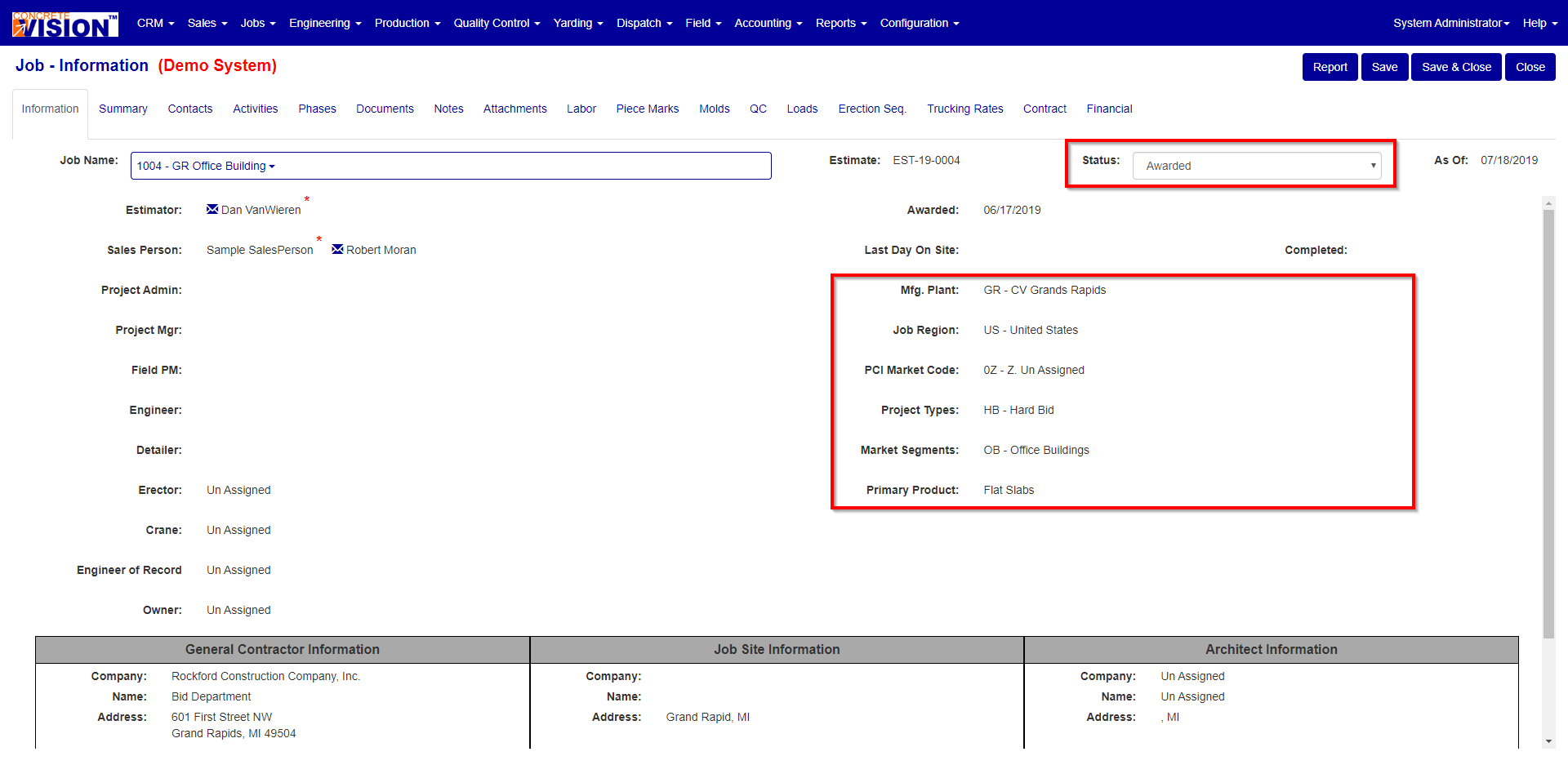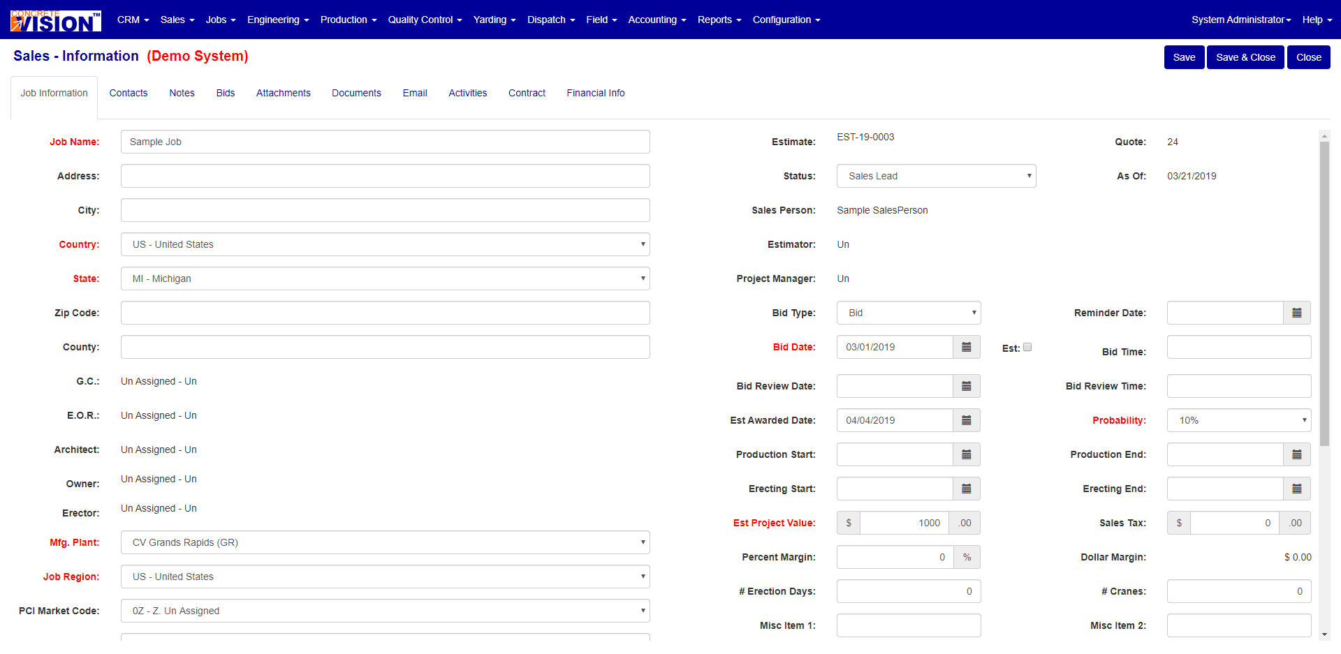 Sales > Estimate/Proposal Lookup > Sales Information