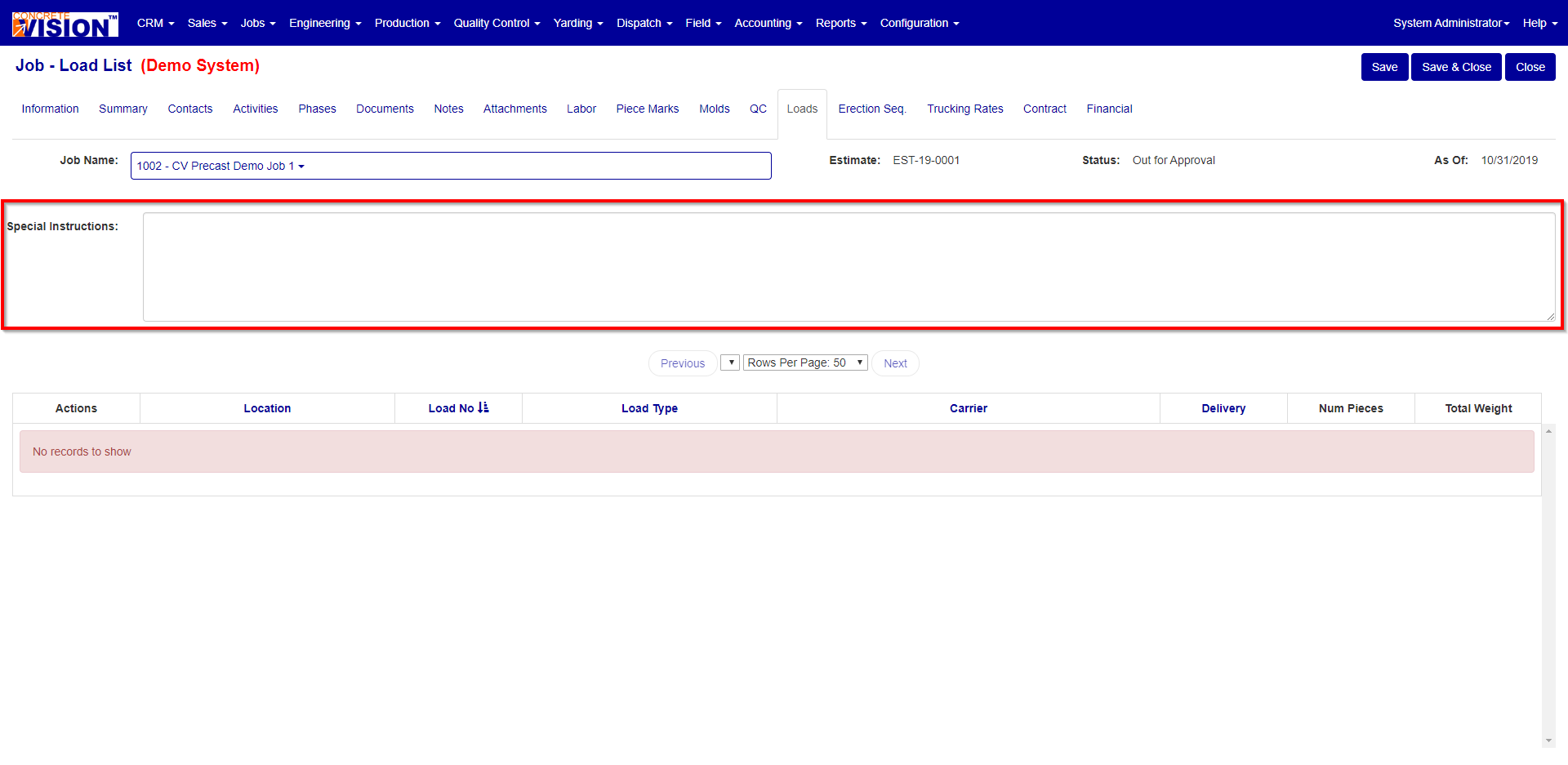 In the Loads Tab (Red Box in Figure 13) section of the screen it will allow you to modify if the Special Instructions are editable for the module in question. (Red Box in Figure 14)