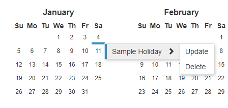 To Edit a Holiday, right click on the underlined date for the holiday, thus opening the options for that date (Figure 4). Select the holiday to remove or edit, and then choose to update or delete it. If you Edit the holiday, the same window as adding a holiday will appear and follow the instructions for adding a holiday.