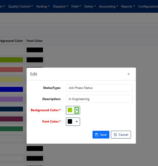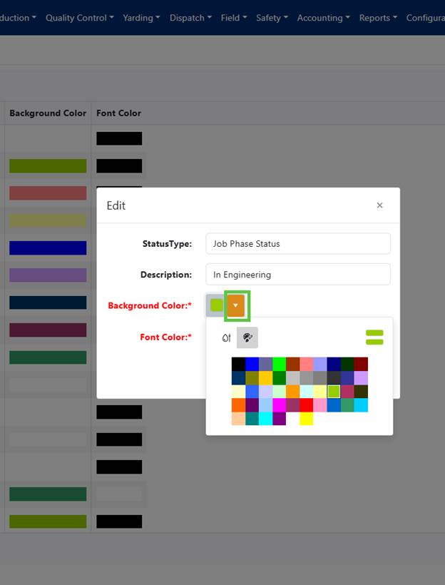 To modify the colors for any status: