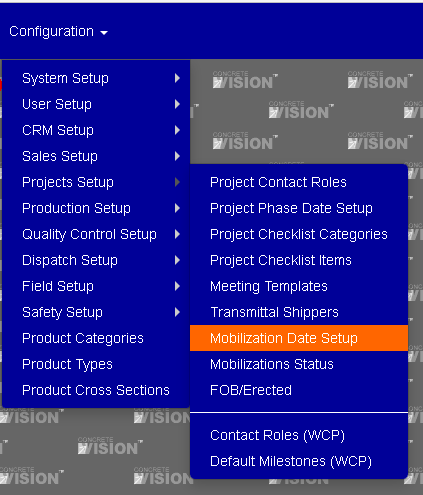 You access Mobilization Date Setup from the Configuration menu under Project Setup (Figure 1).