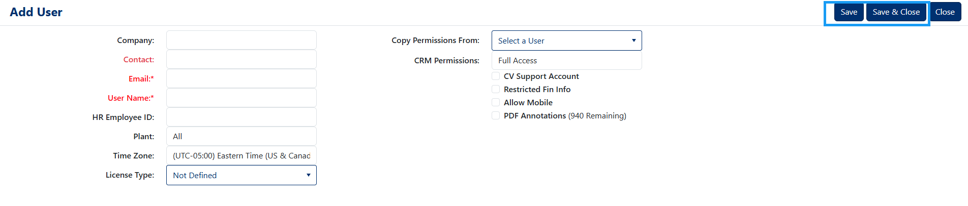 - Click either Save or Save & Close