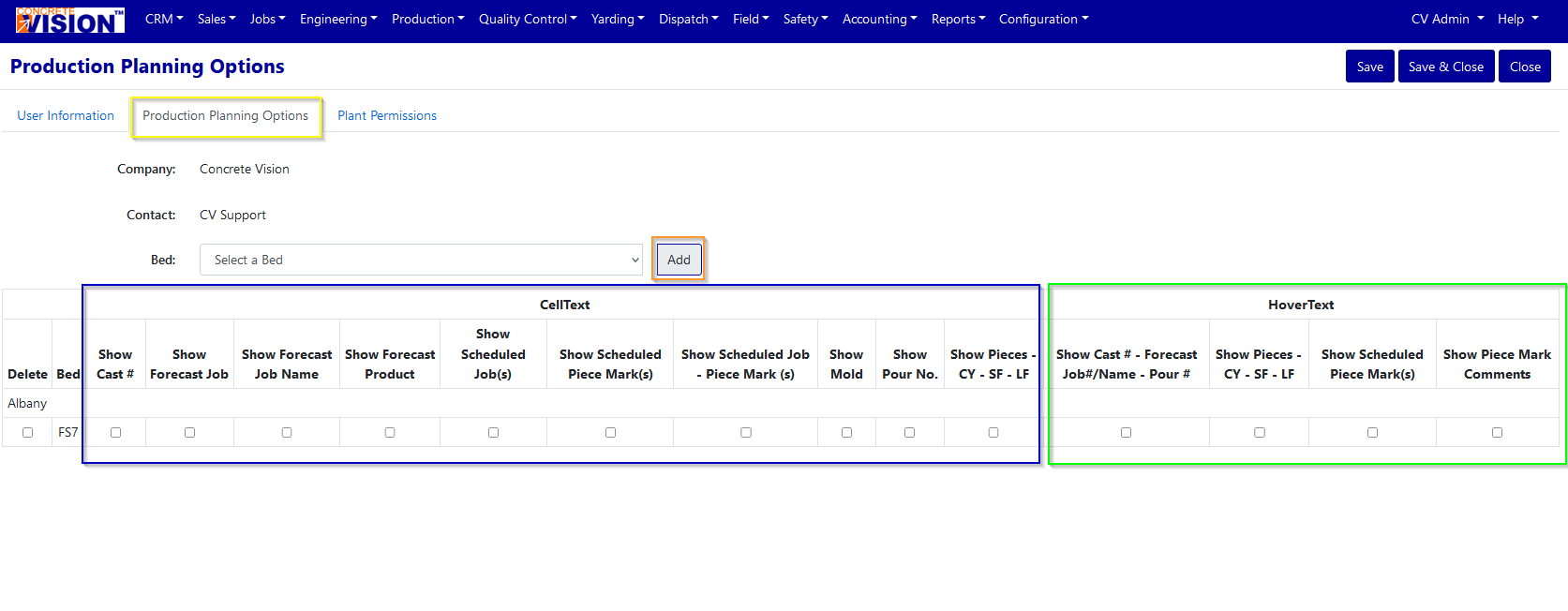 Production Planning Bed Options