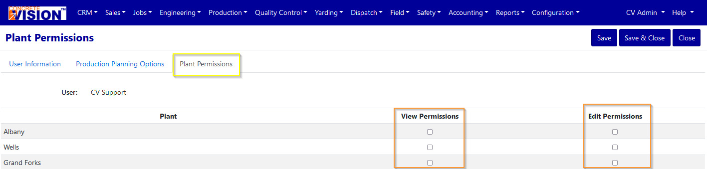 - In the user edit screen, click the Plant Permissions tab (Figure 7 - yellow outline)