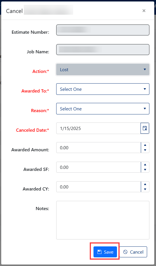 - Set the 'Canceled Date' date. (Required)