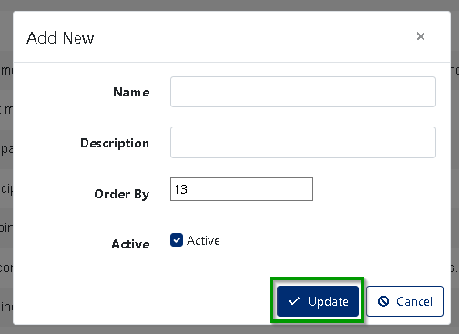 - Set the Order By number for the new Credit Rating . (Required)