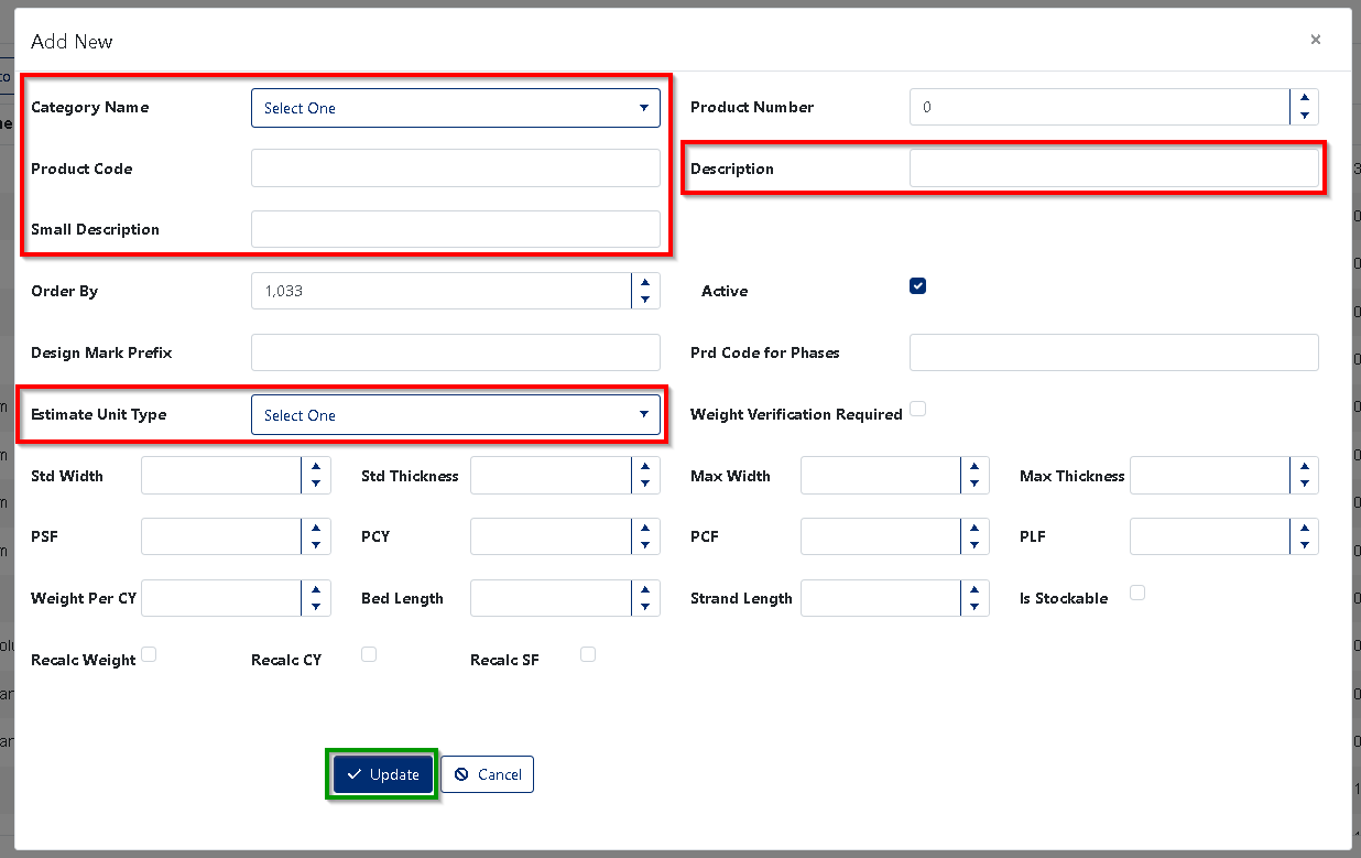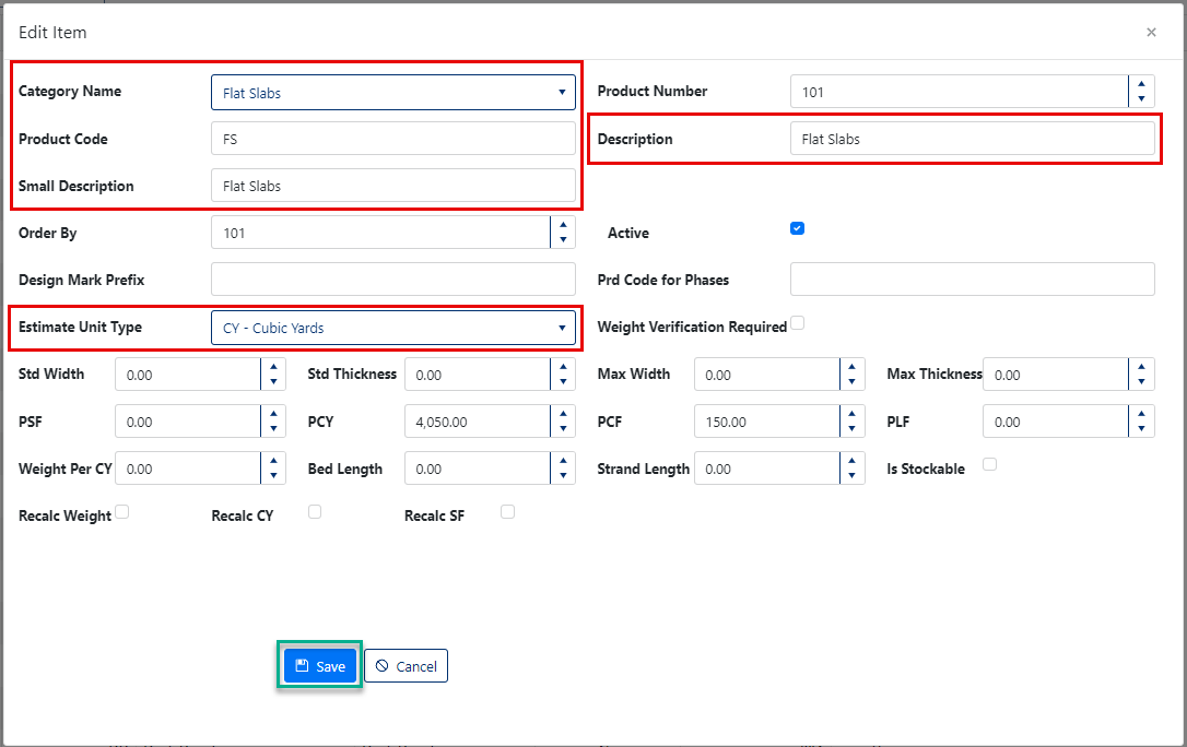 - Modify any/all other needed product dimensions and specifications.