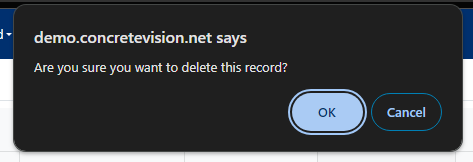 - This will open a confirmation window where you will be asked "Are you sure you want to delete this record?" click [OK] to allow the deletion. (Figure 5)