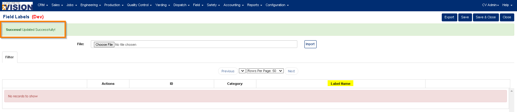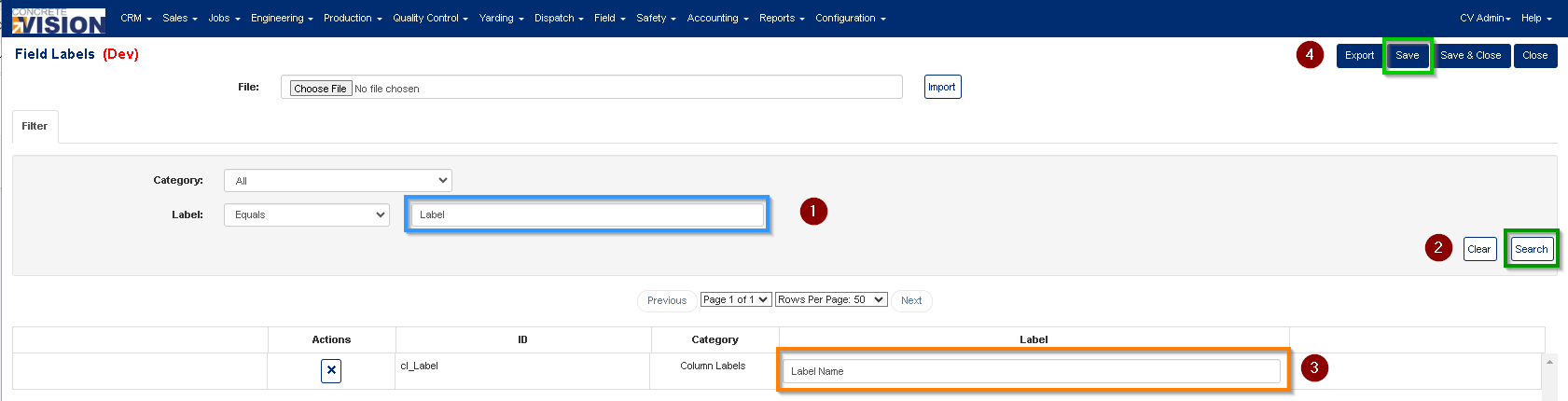 The Field Labels configuration tool within Concrete Vision allows you to easily modify and customize labels associated with various elements throughout Concrete Vision. These labels are categorized into three types: Field Labels, Column Labels, and general Labels. By simply modifying the existing label and clicking one of the Save buttons at the top, your changes will be reflected immediately wherever the label is used ensuring consistency and clarity to your users.