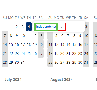 - Clicking the 'X' on this tooltip will delete that Holiday (Red box in Figure 7)