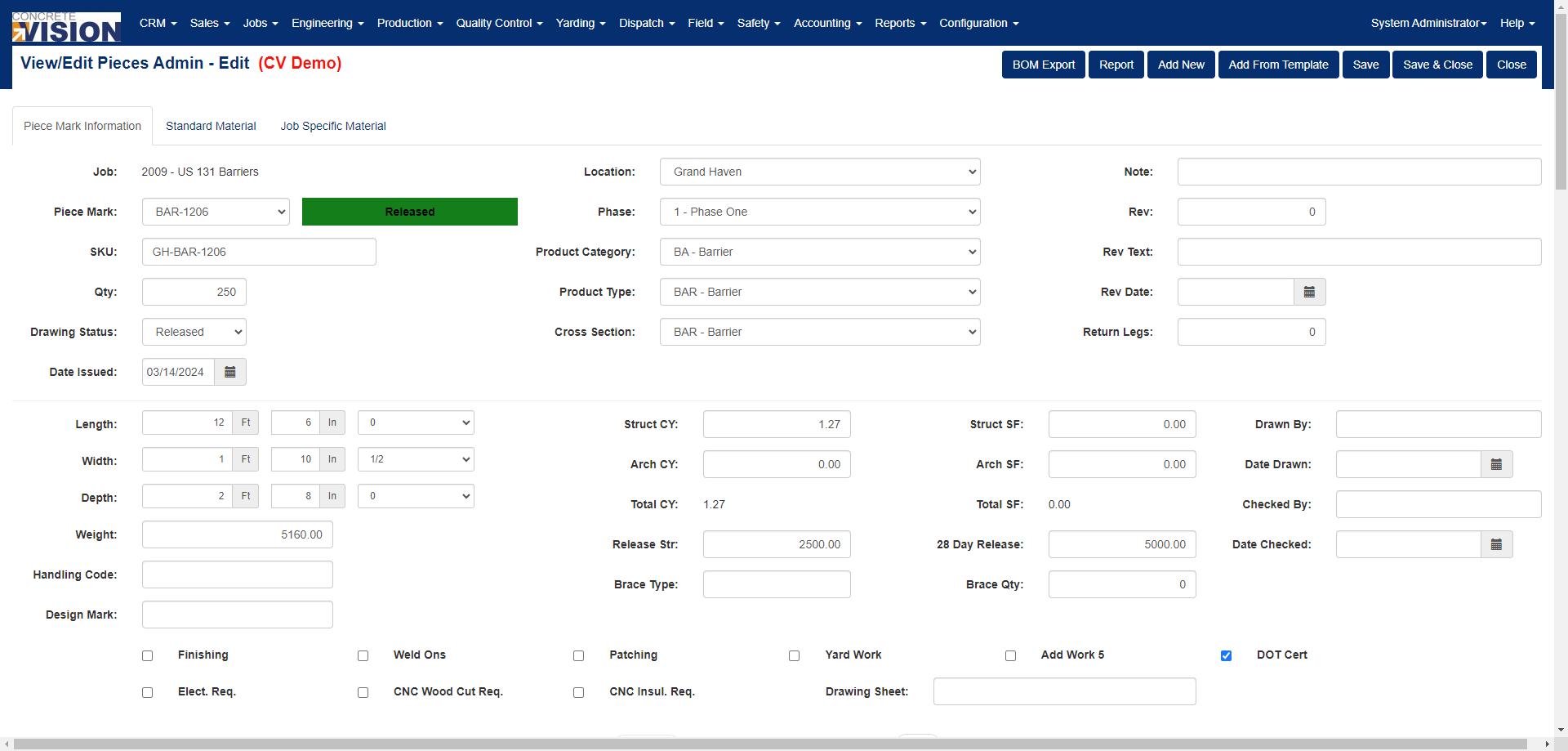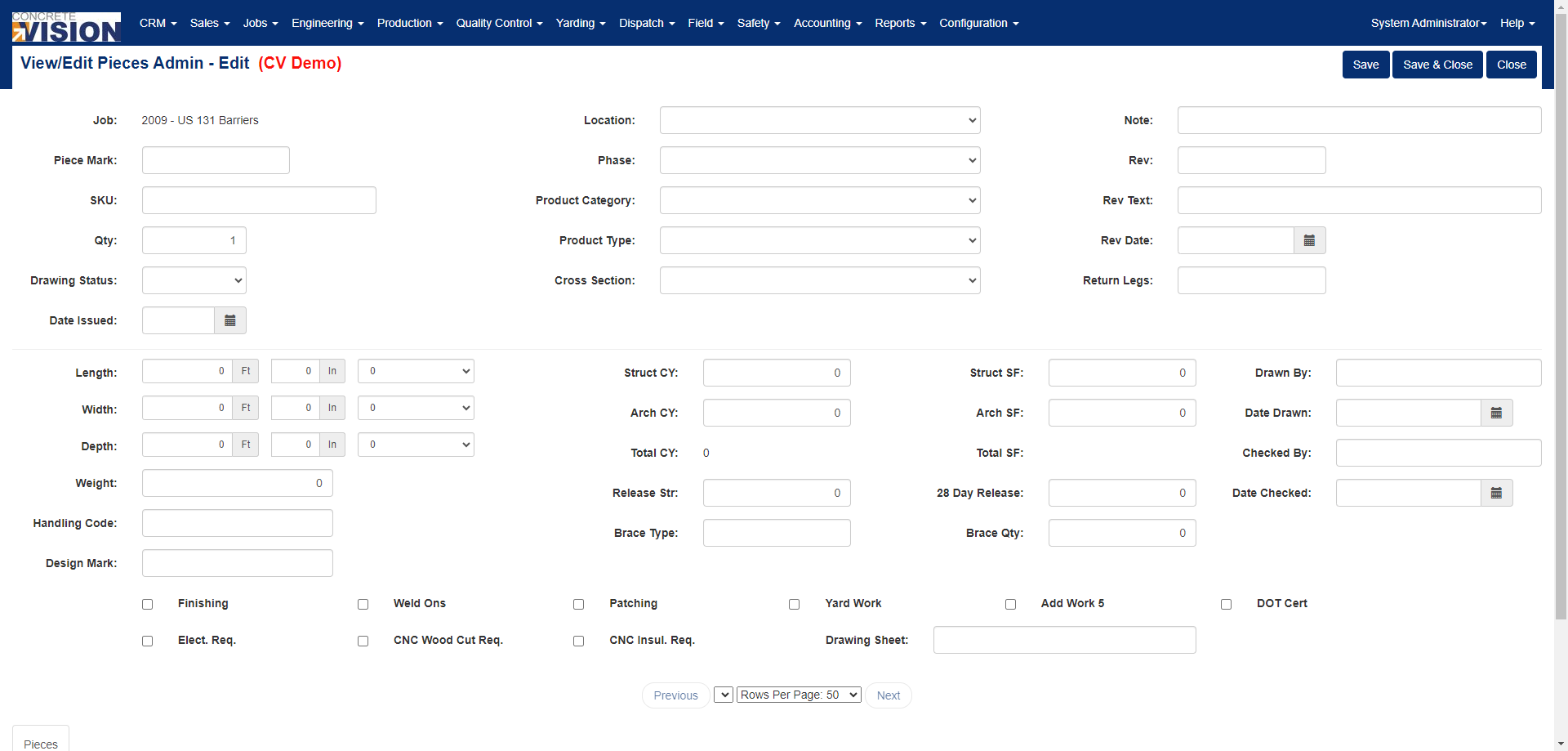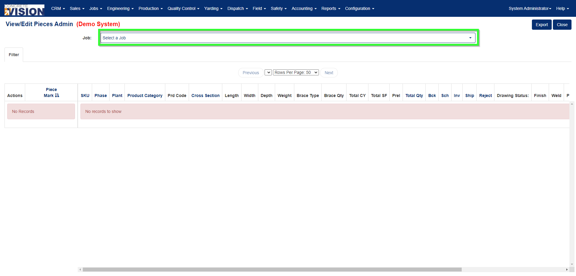 Access to the View/Edit Admin screen is restricted and must be requested through our support team. Approval is required from your company’s Concrete Vision administrator. This screen can only be enabled by our team through direct changes to the database.