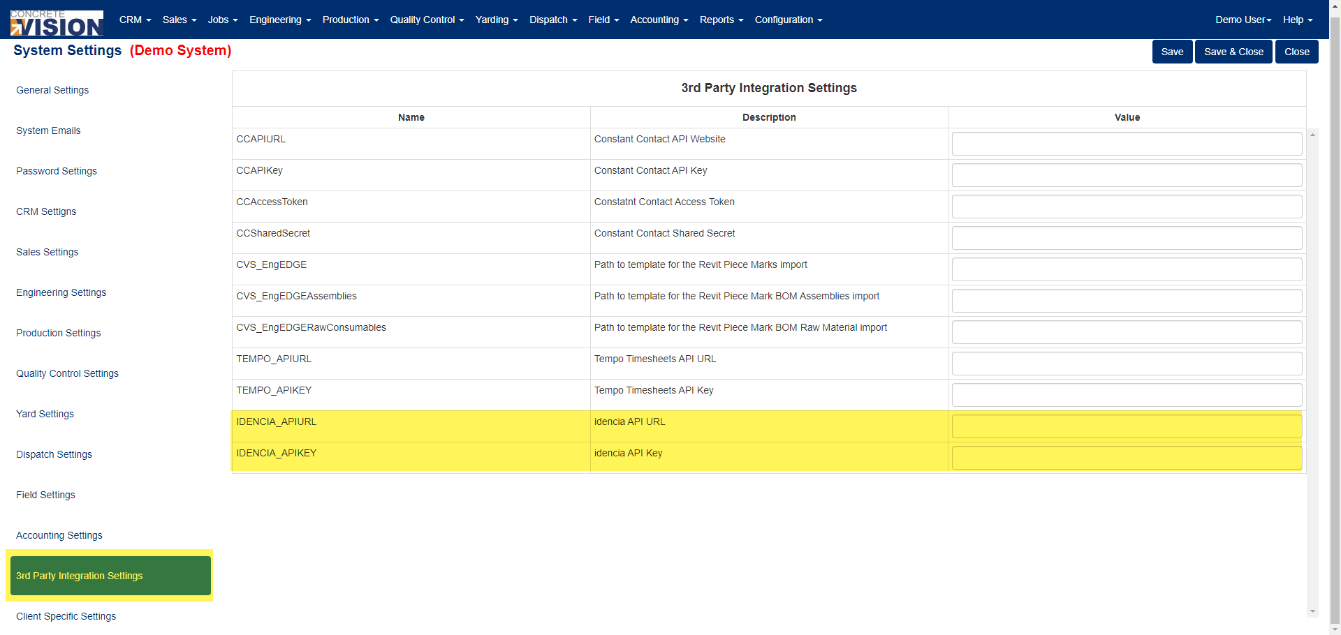 - Enter the API Key for the Idencia API