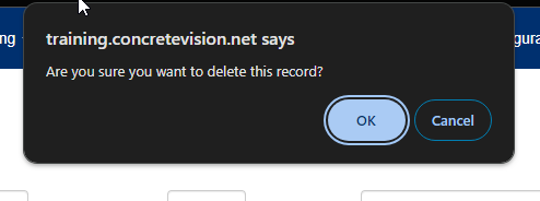 - Confirm deletion when prompted with "Are you sure you want to delete this record?"