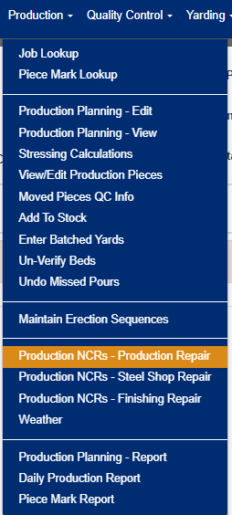 To access the Production NCRs - Production Repair interface: