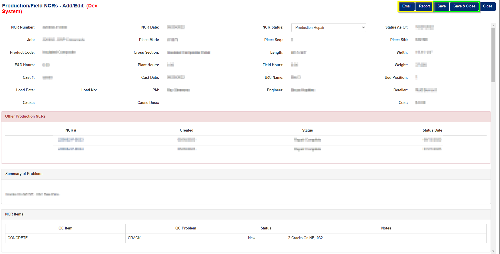 - Update Status: Change the NCR status once production repair is complete