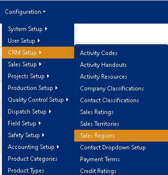 To access the Sales Region configuration:
