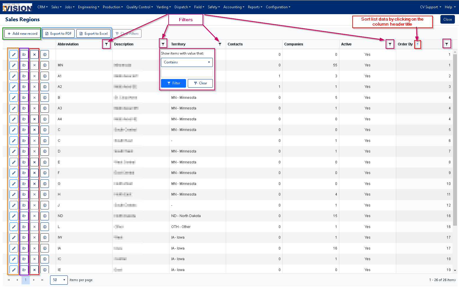 The Sales Region module is a core component of the CRM system that allows you to: