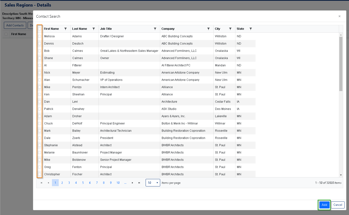 Adding Contacts to Sales Regions