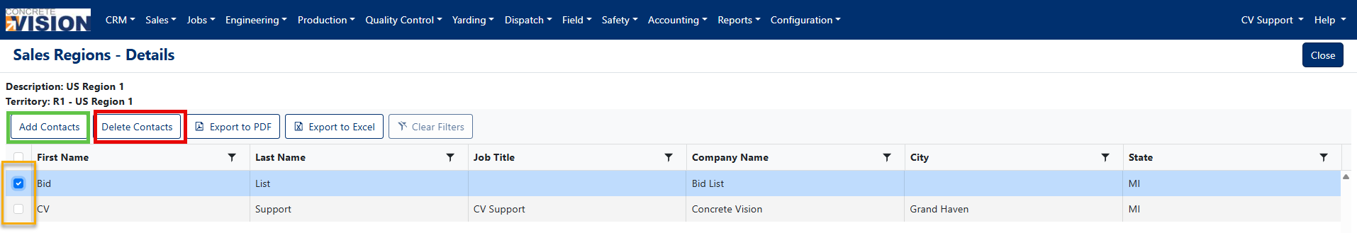Managing Contacts in Sales Regions
