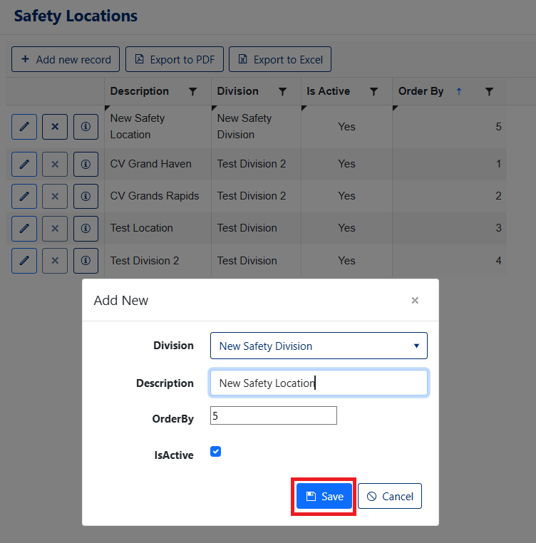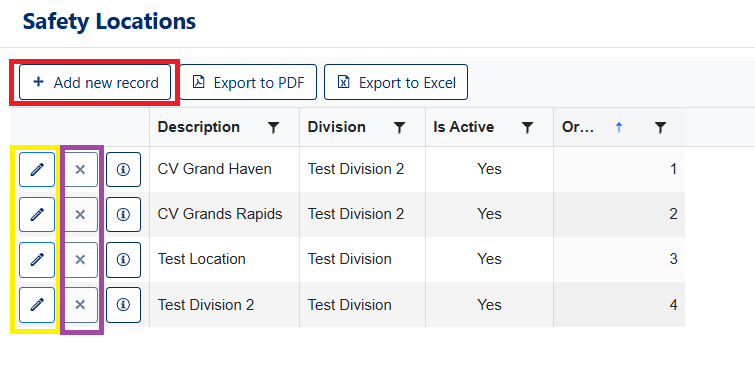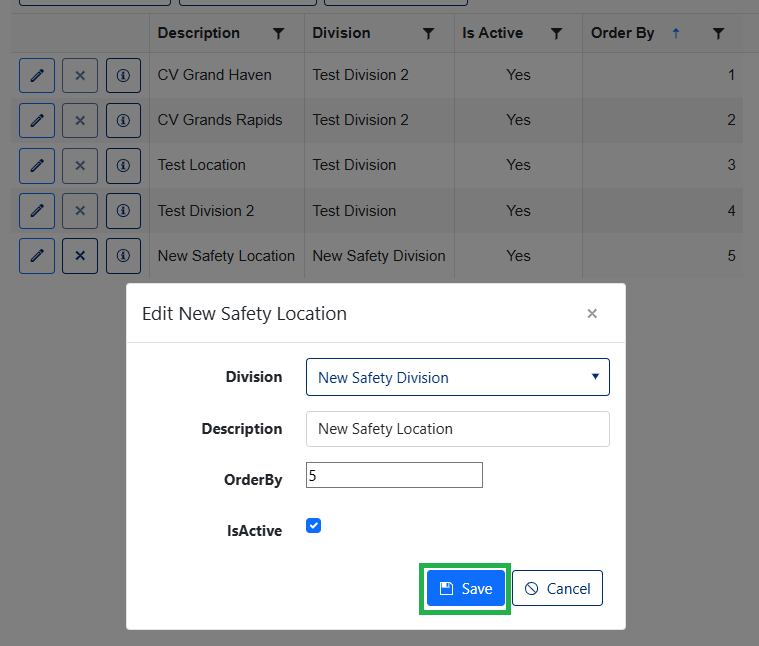 Important: Deactivating a Safety Location will remove it from dropdown menus in Safety Forms, but it won't delete historical data associated with that location.