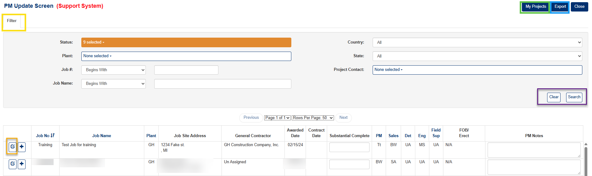 - Click My Projects to show only projects assigned to you (Green box, Figure 2)