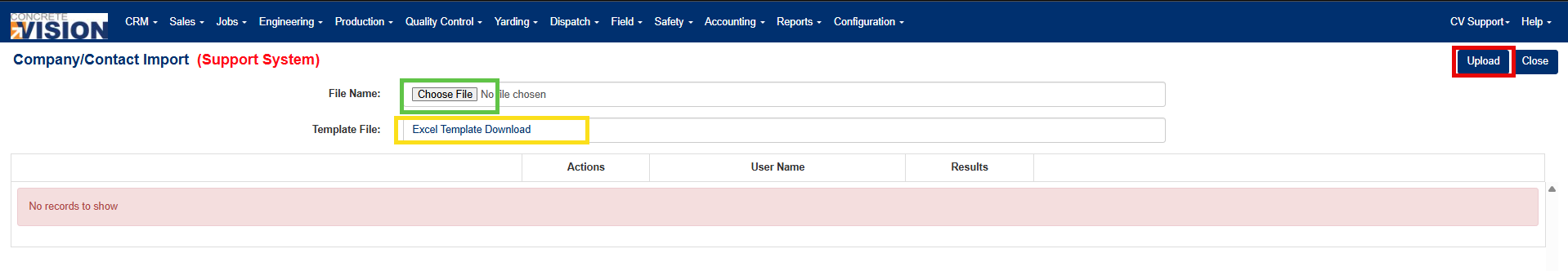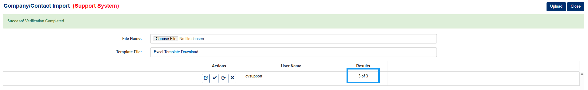 - Navigate to the Company/Contact Import screen