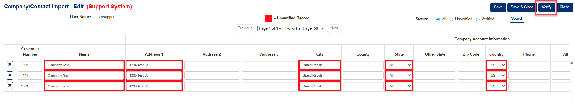 - The system will run validation checks and mark records as verified