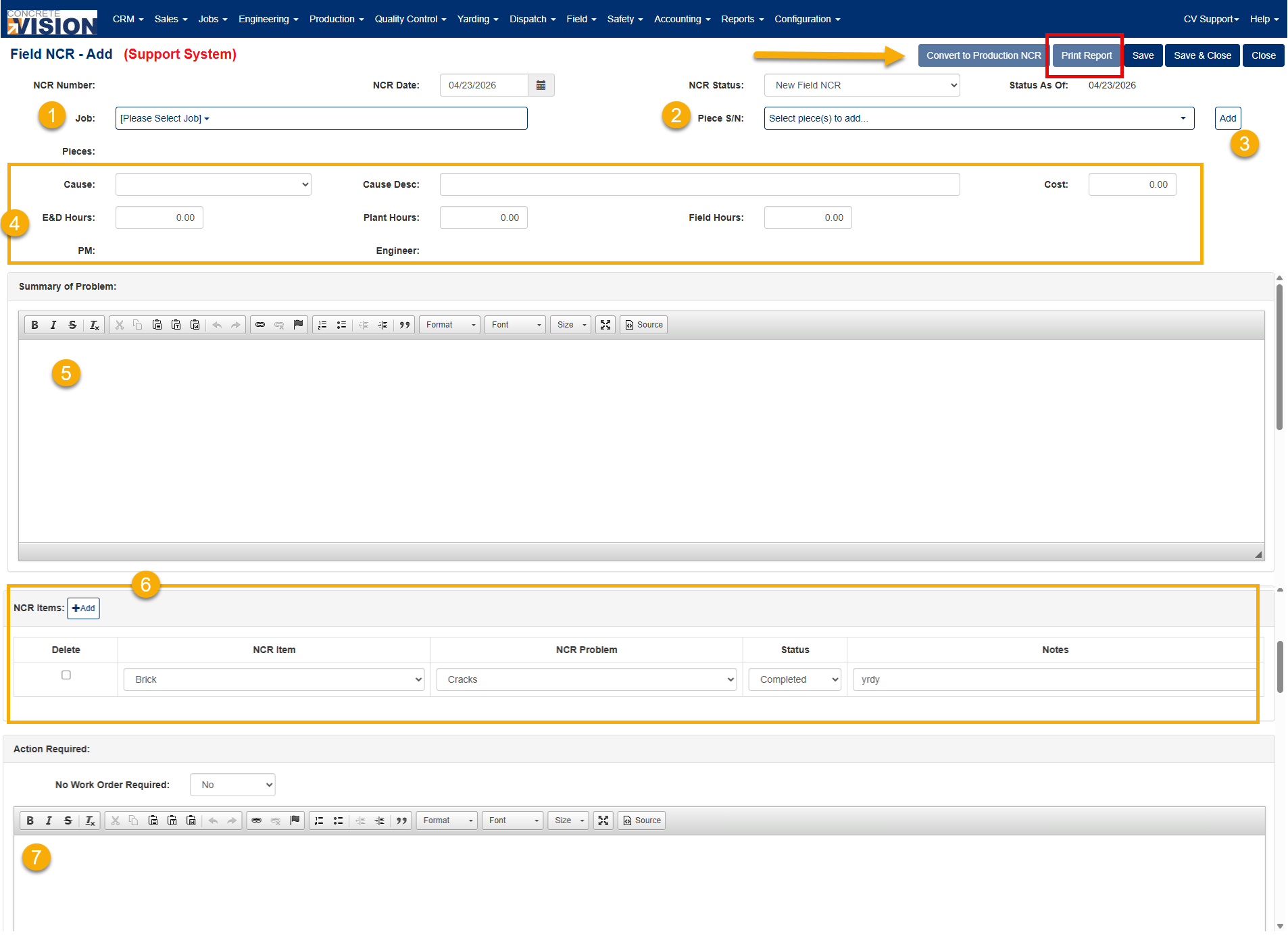 - Print a report of a new Field NCR.